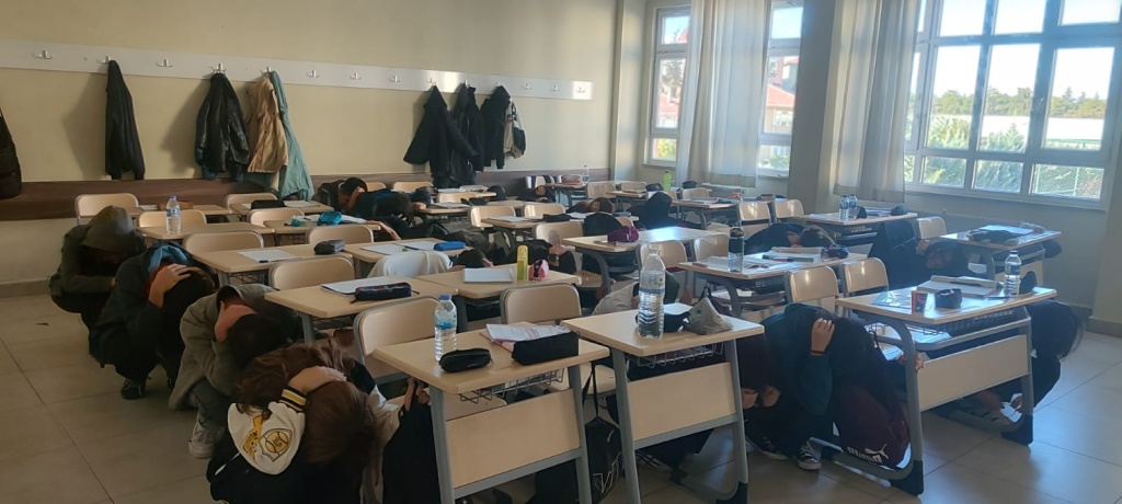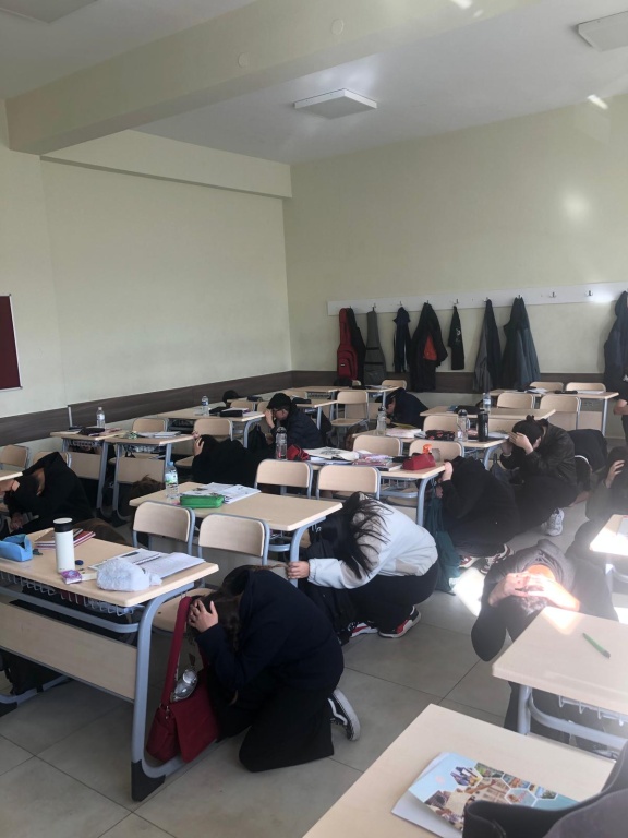 “Afetler ve Dayanıklılık Ayı” Kapsamında Okulumuzda Eş Zamanlı Tatbikat Uygulandı.